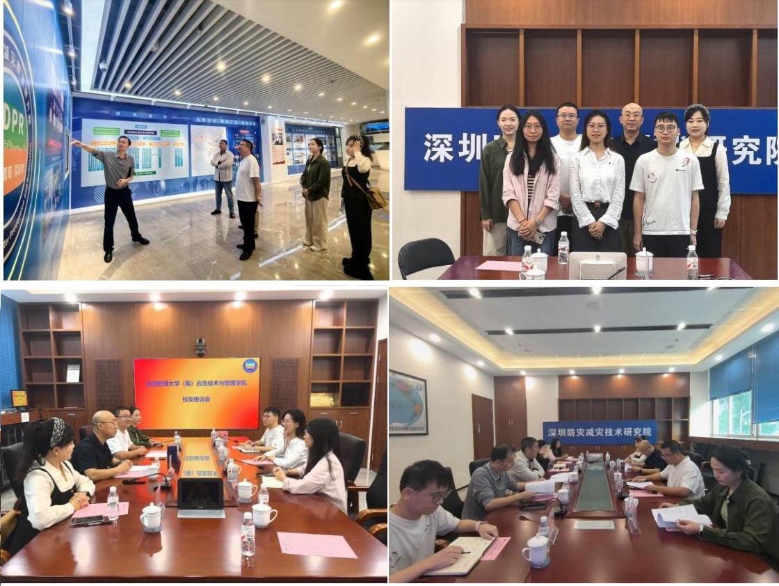 走访首站为深圳市防灾减灾技术研究院。研究院副院长田硕对团队到访表示热烈欢迎,通过专题宣讲、案例分享等形式,系统介绍了研究院的发展历程、核心业务布局,以及在防灾减灾领域的技术成果与行业优势。双方聚焦人才联合培养、科研项目合作、技术成果转化三大方向展开深度研讨,就吸纳学生参与科研项目、共建实践教学基地等具体合作内容达成初步共识,为后续协同育人工作筑牢基础。
