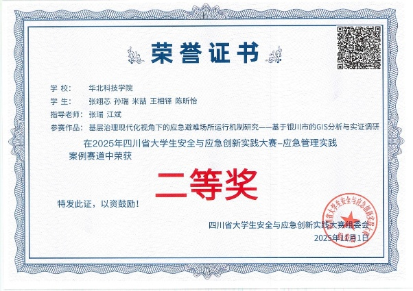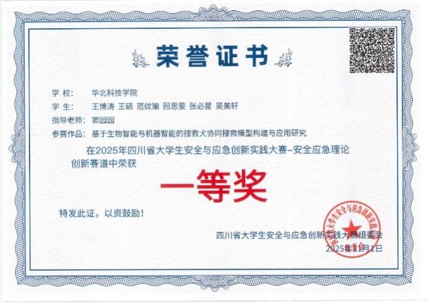 近日,由四川省教育厅主办,中国灾害防御协会应急管理教育分会、全国应急技术与管理本科专业高校联盟指导,西华大学承办的四川省大学生安全与应急实践大赛圆满落幕。本次大赛经线上角逐筛选 30% 队伍晋级决赛,四川大学、中国矿业大学、西南交通大学等多所高校同台竞技。我校犬力应急志愿协会两支队伍表现突出,最终脱颖而出:搜救犬课题小组(王博涛、王硕、回思雯、范纹瑜、张必星、吴美轩)斩获安全应急理论创新赛场一等奖,应急救援课题小组(张翊芯、孙瑞、米喆、陈欣怡、王相铎)荣获应急管理实践案例赛场二等奖。