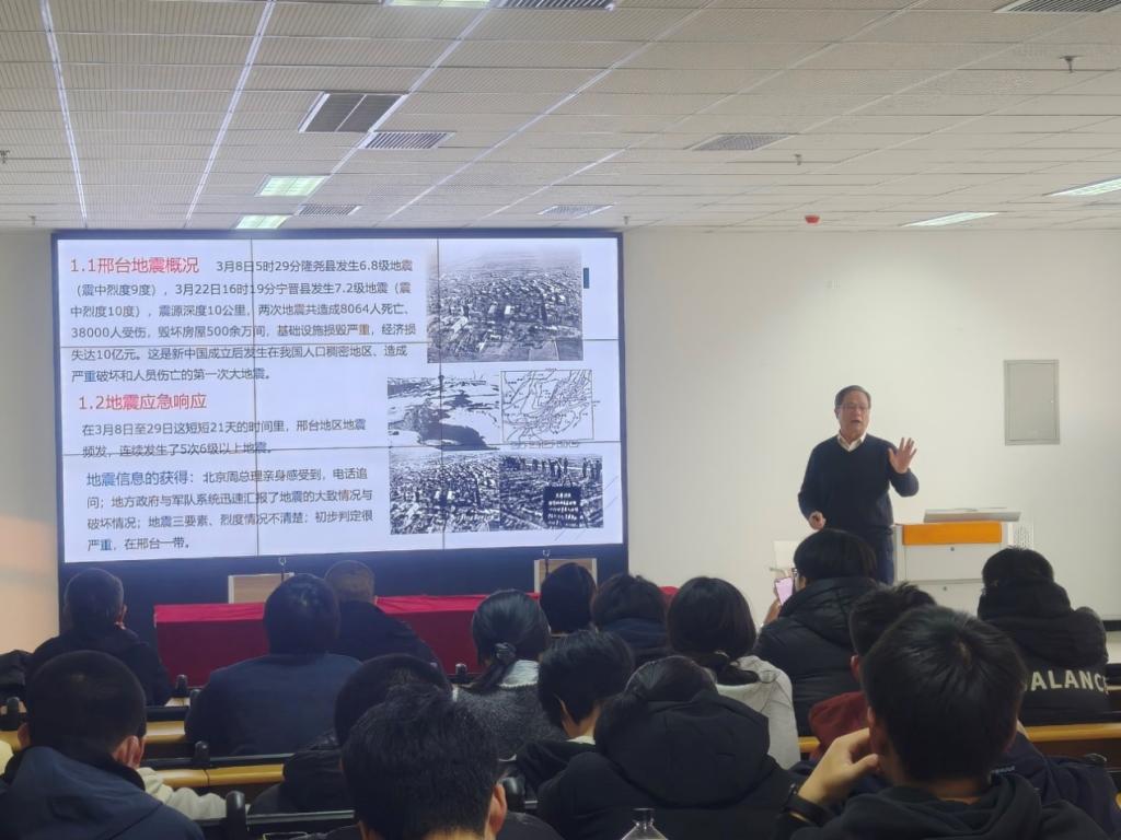 12月10日,我校原副校长迟宝明教授为我校师生作题为“共和国五次地震大应急”的专题报告。报告会由单维锋教授主持,相关教师和学生现场聆听并进行交流。